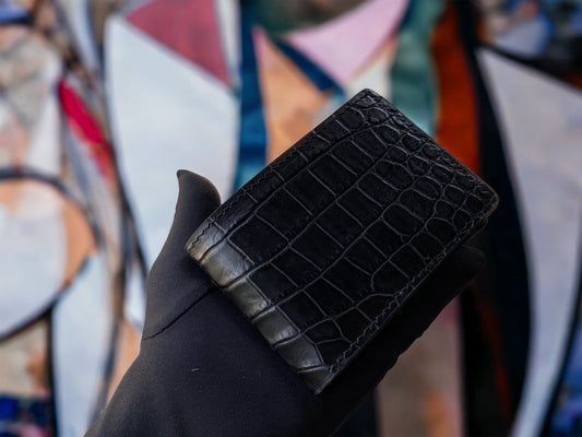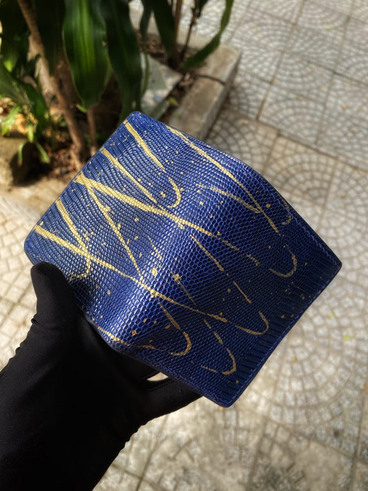 Custom Navy Blue Lizard Mix Gold Wallet with Coin Pocket
