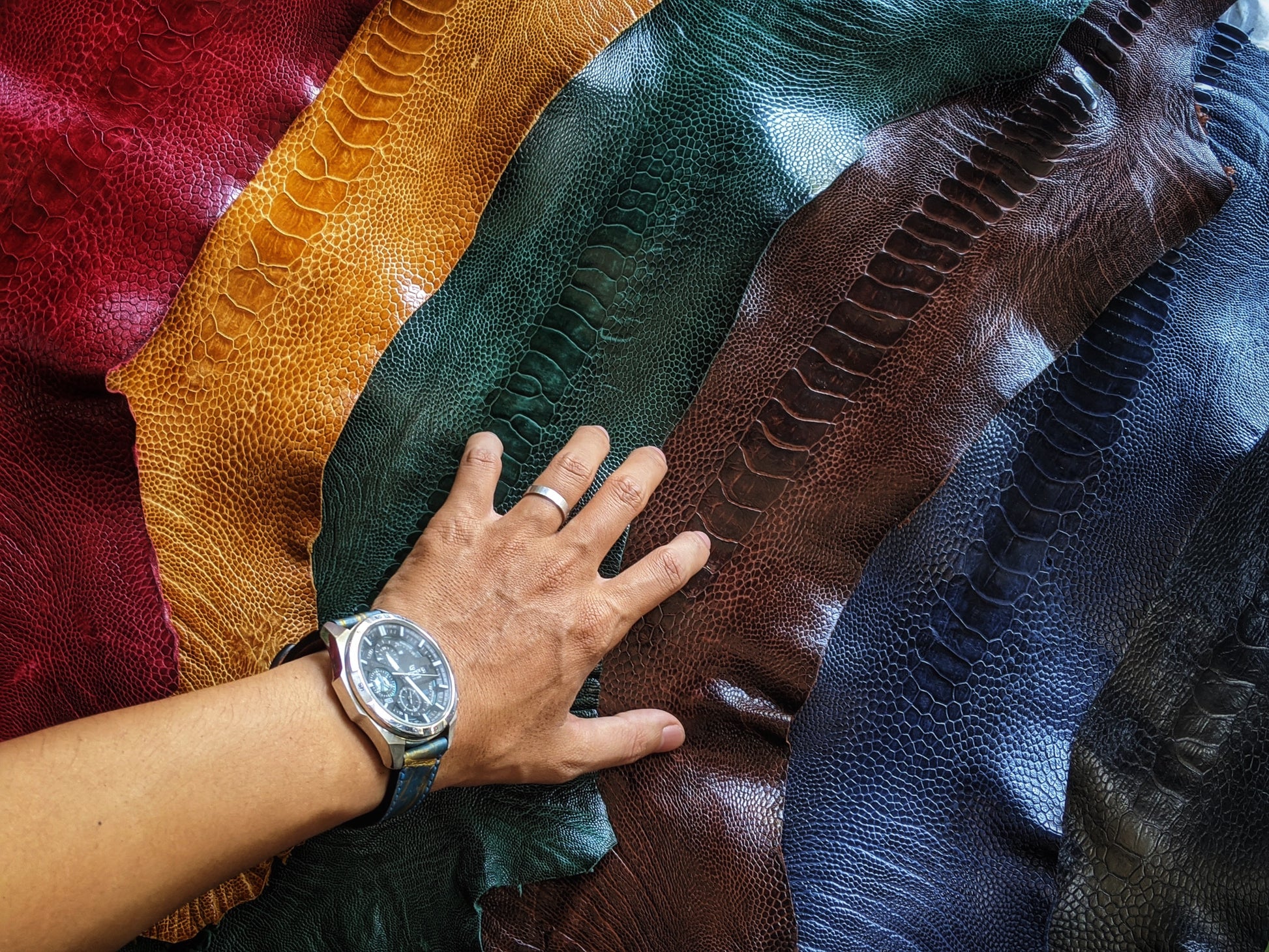 We have many kinds of leathers for you to create your customized products such as lizards, ostrich legs, stingrays, pythons, alligators and etc. If you want more exotic leathers, please let us know.