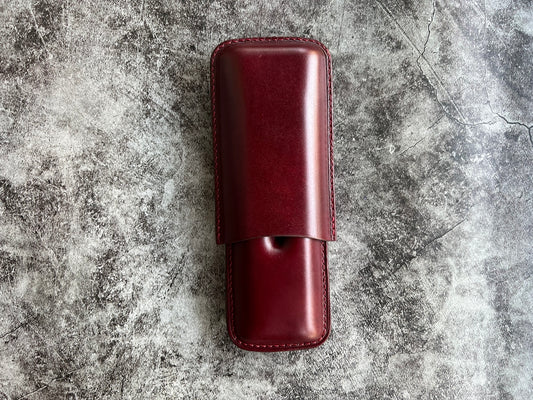 Handmade Wine Leather Cigar Case, Leather Cigar Humidor, 2 to 3 Tubes Cigar Case