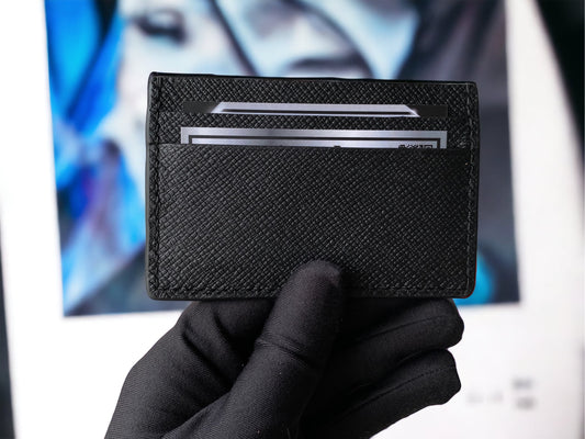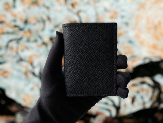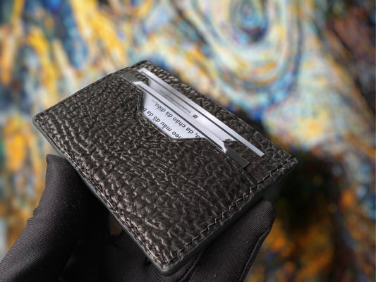 Custom Minimalist Black Cowhide Card Holder - Bifold Card Case