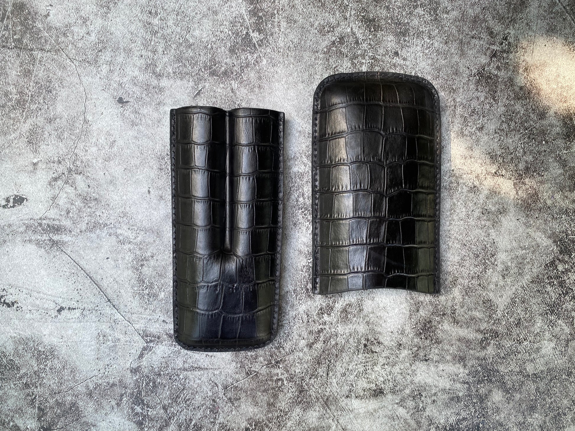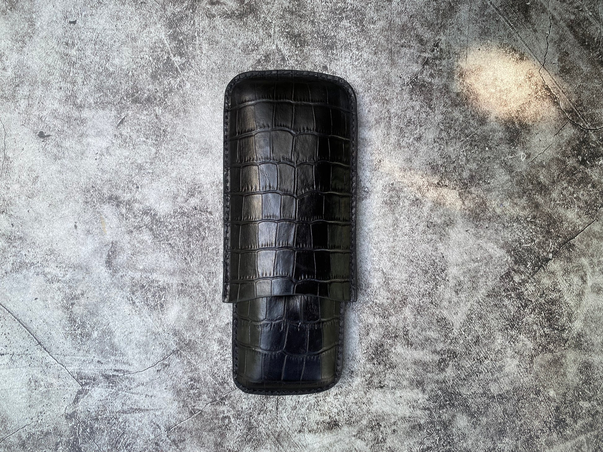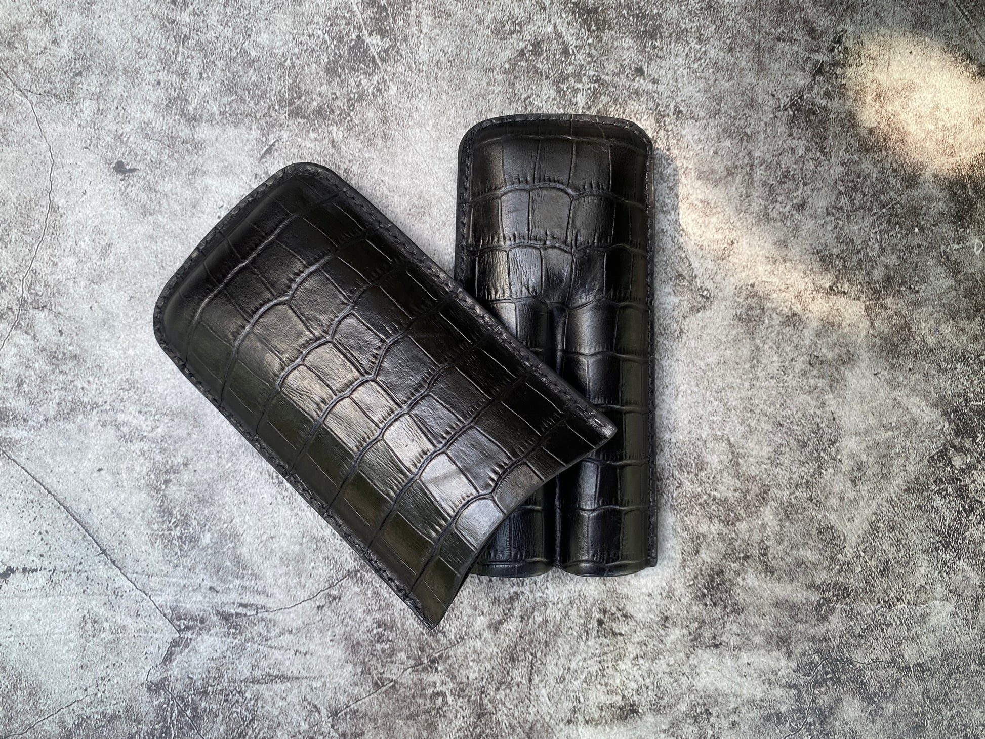 Handmade Black Italy Printed Cowhide Leather Cigar Case, Leather Cigar Humidor, 2 to 3 Tubes Cigar Case