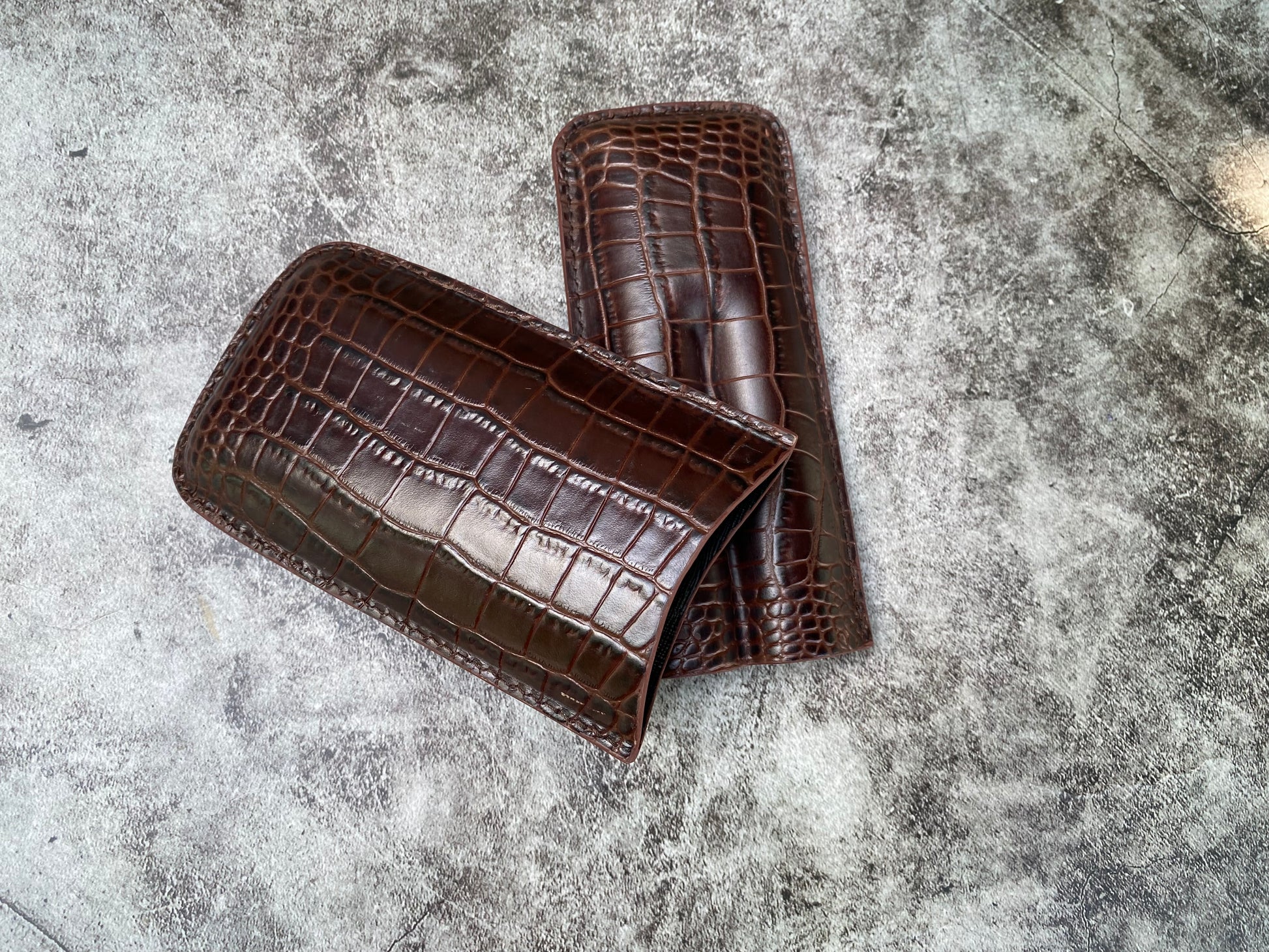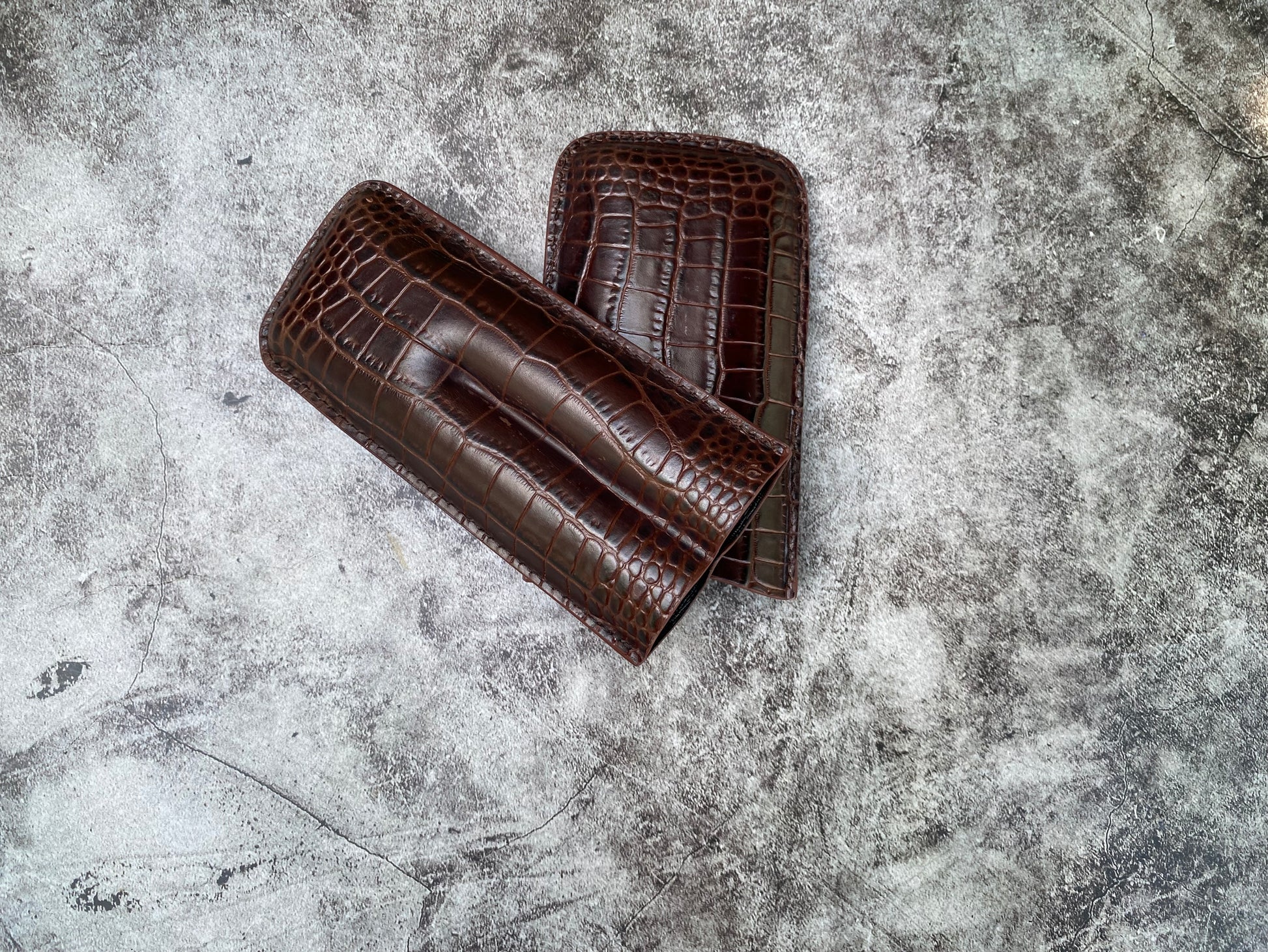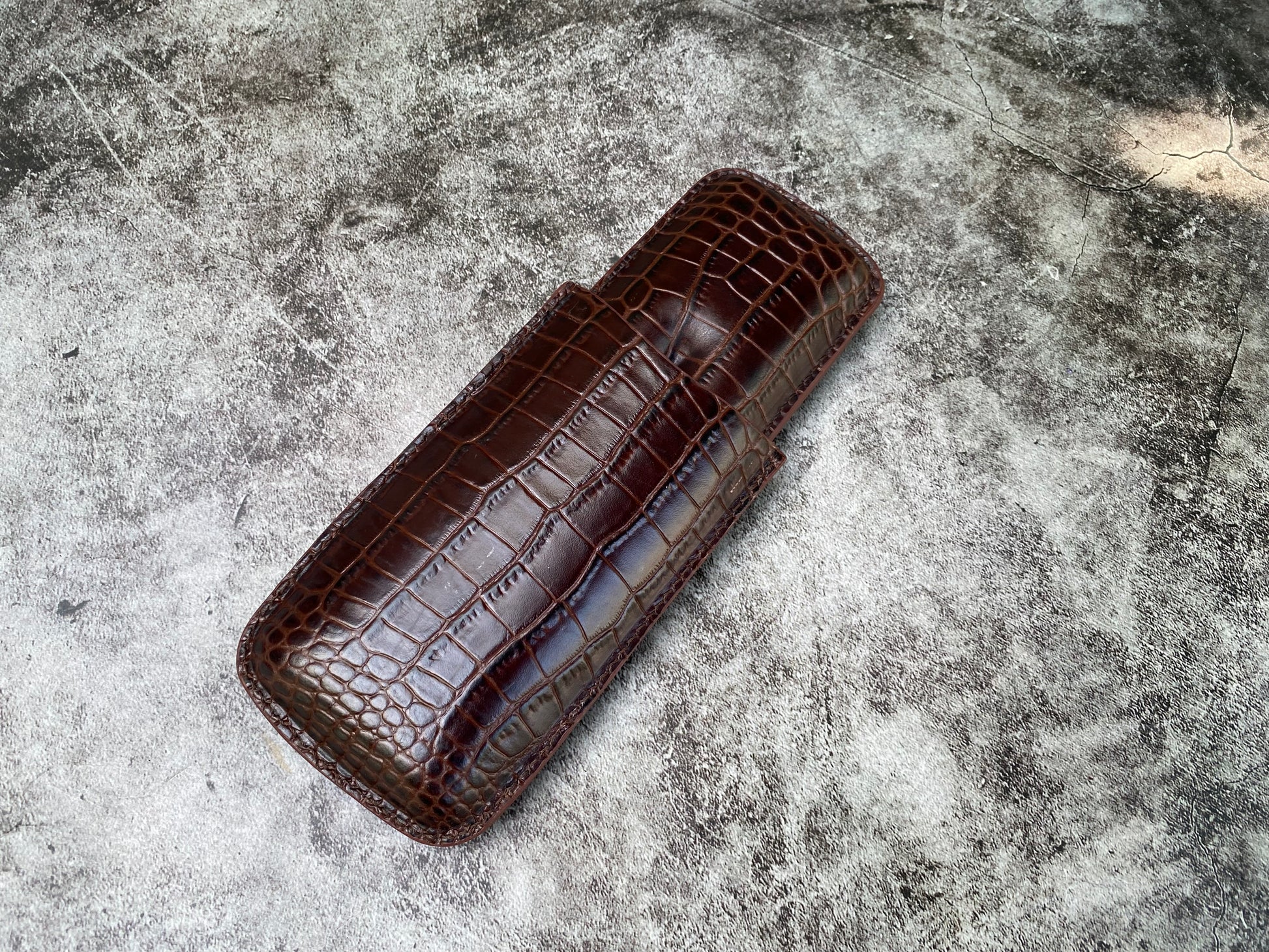 Handmade Dark Brown Italy Printed Cowhide Leather Cigar Case, Leather Cigar Humidor, 2 to 3 Tubes Cigar Case