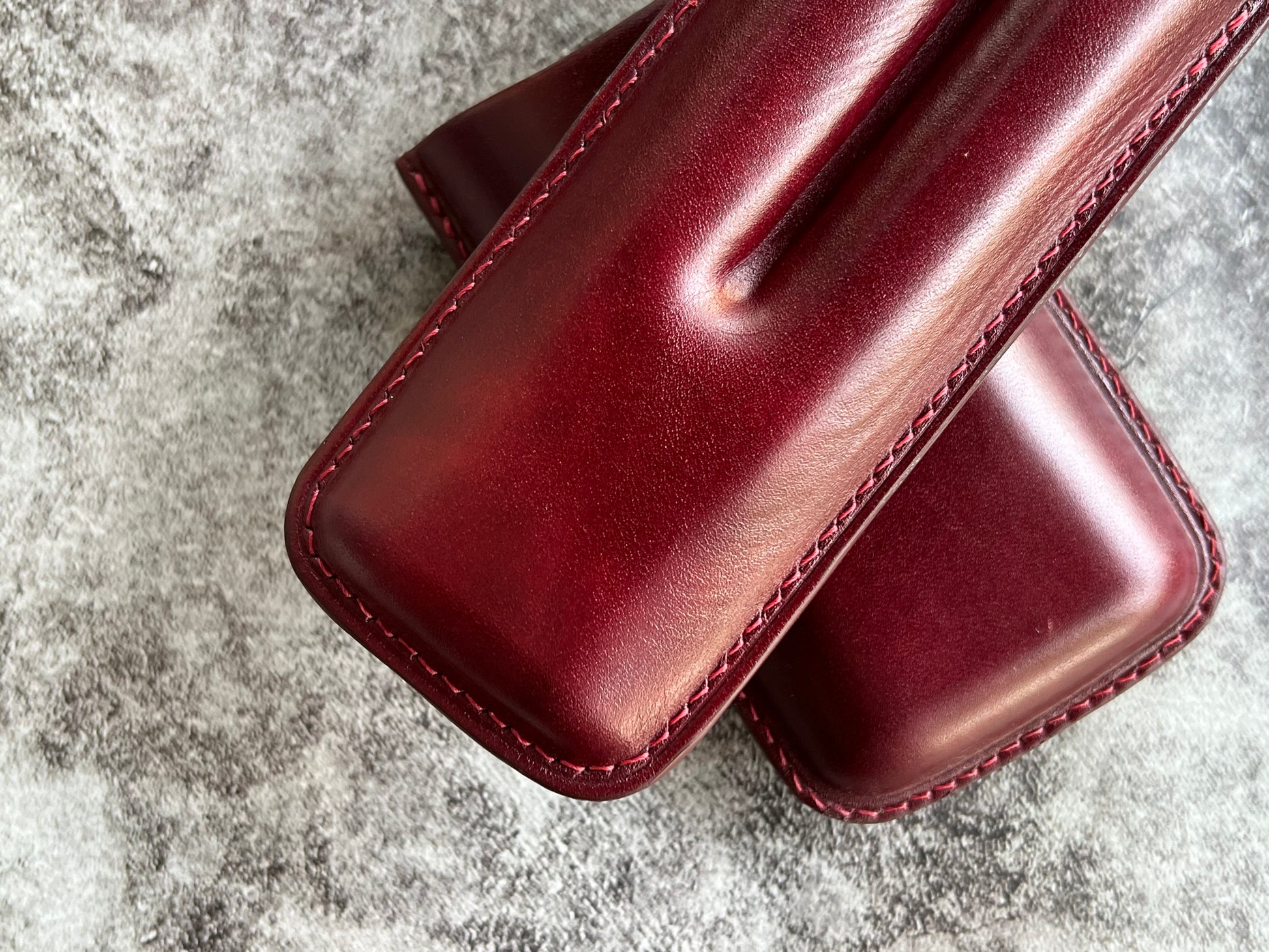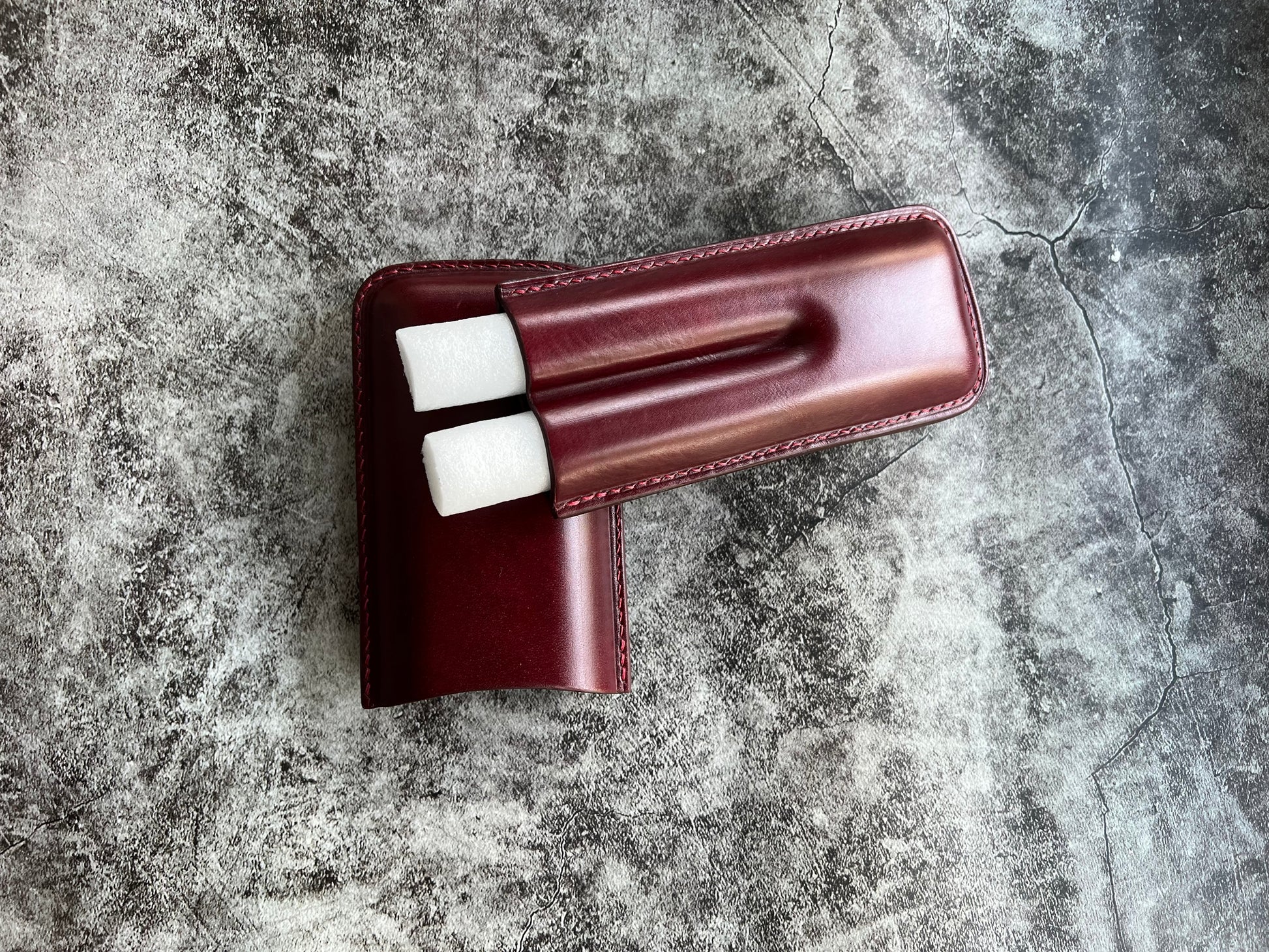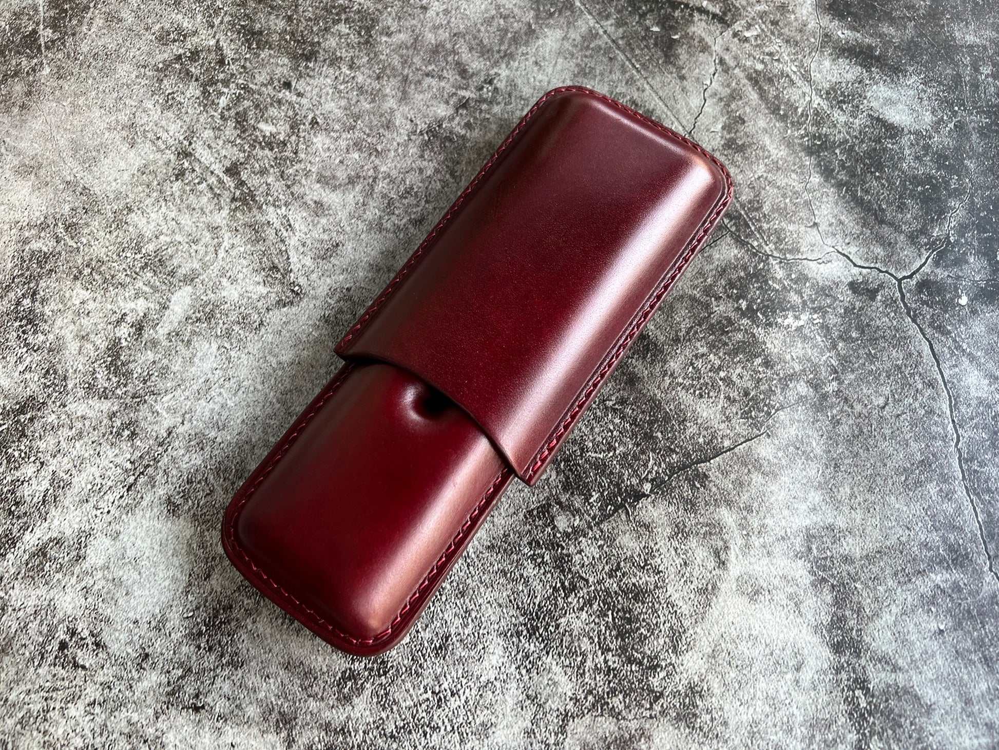 Handmade Wine Leather Cigar Case, Leather Cigar Humidor, 2 to 3 Tubes Cigar Case