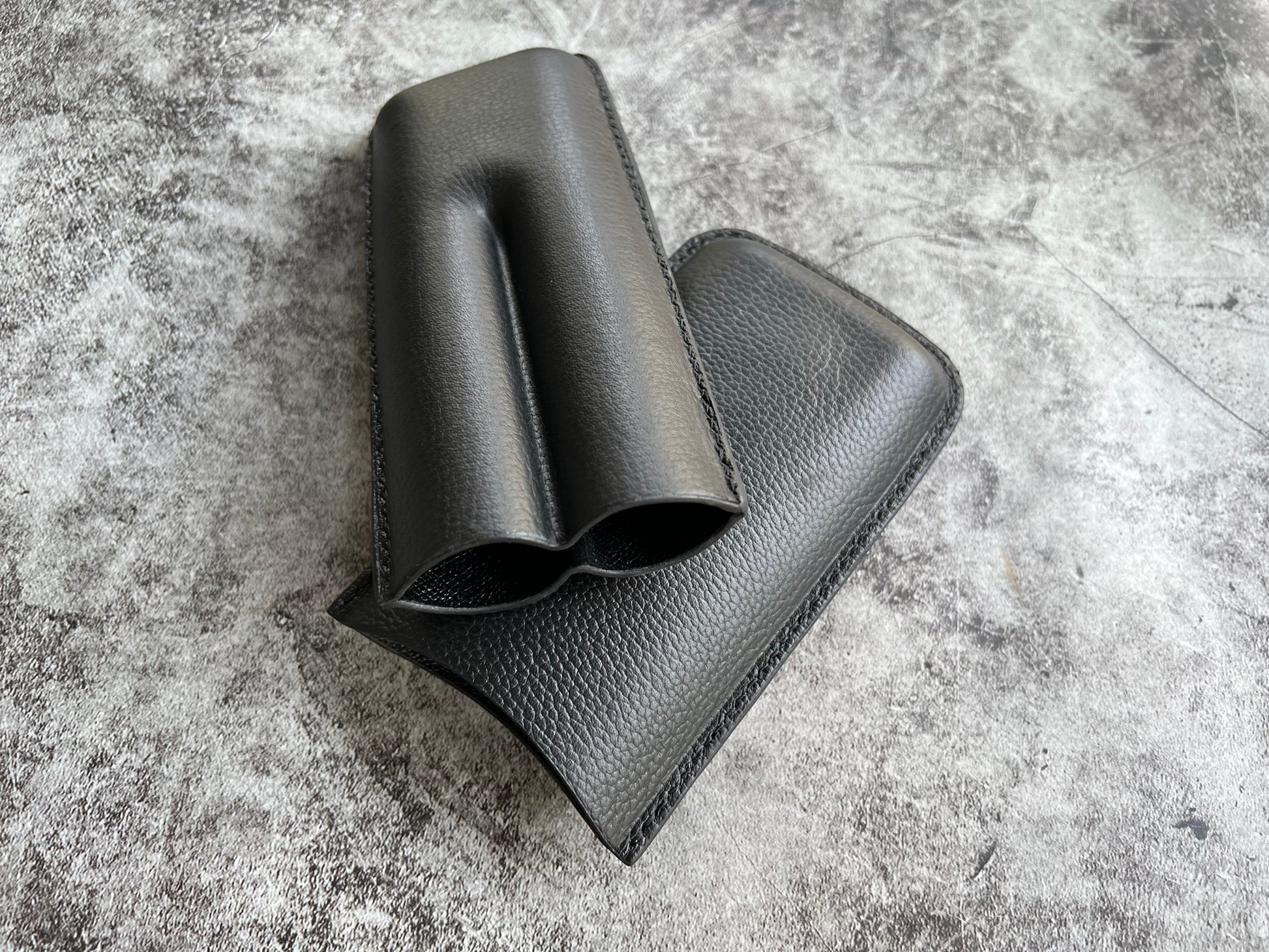 Handmade Black Leather Cigar Case, Leather Cigar Humidor, 2 to 3 Tubes Cigar Case