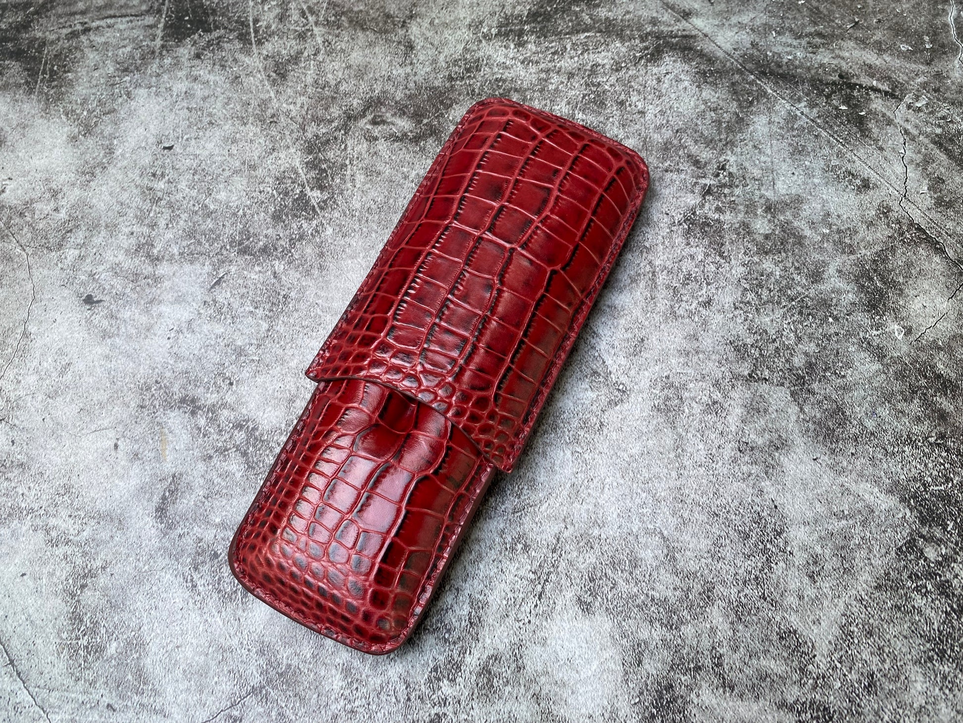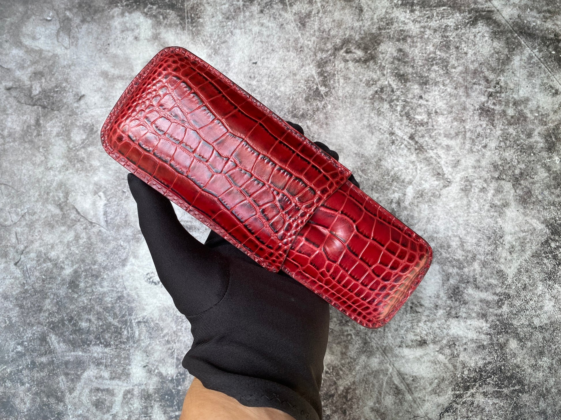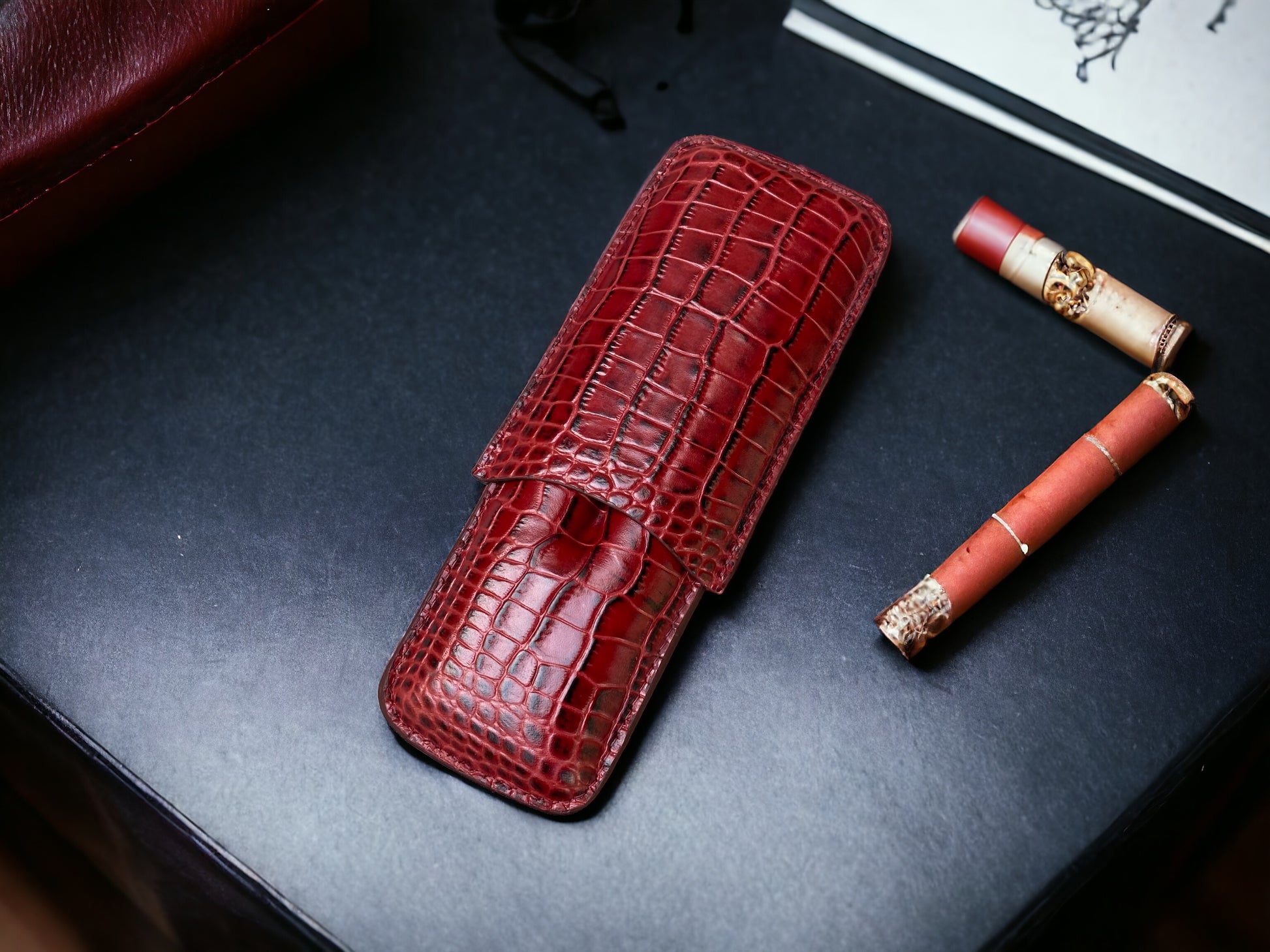 Handmade Red Italy Printed Cowhide Leather Cigar Case, Leather Cigar Humidor, 2 to 3 Tubes Cigar Case
