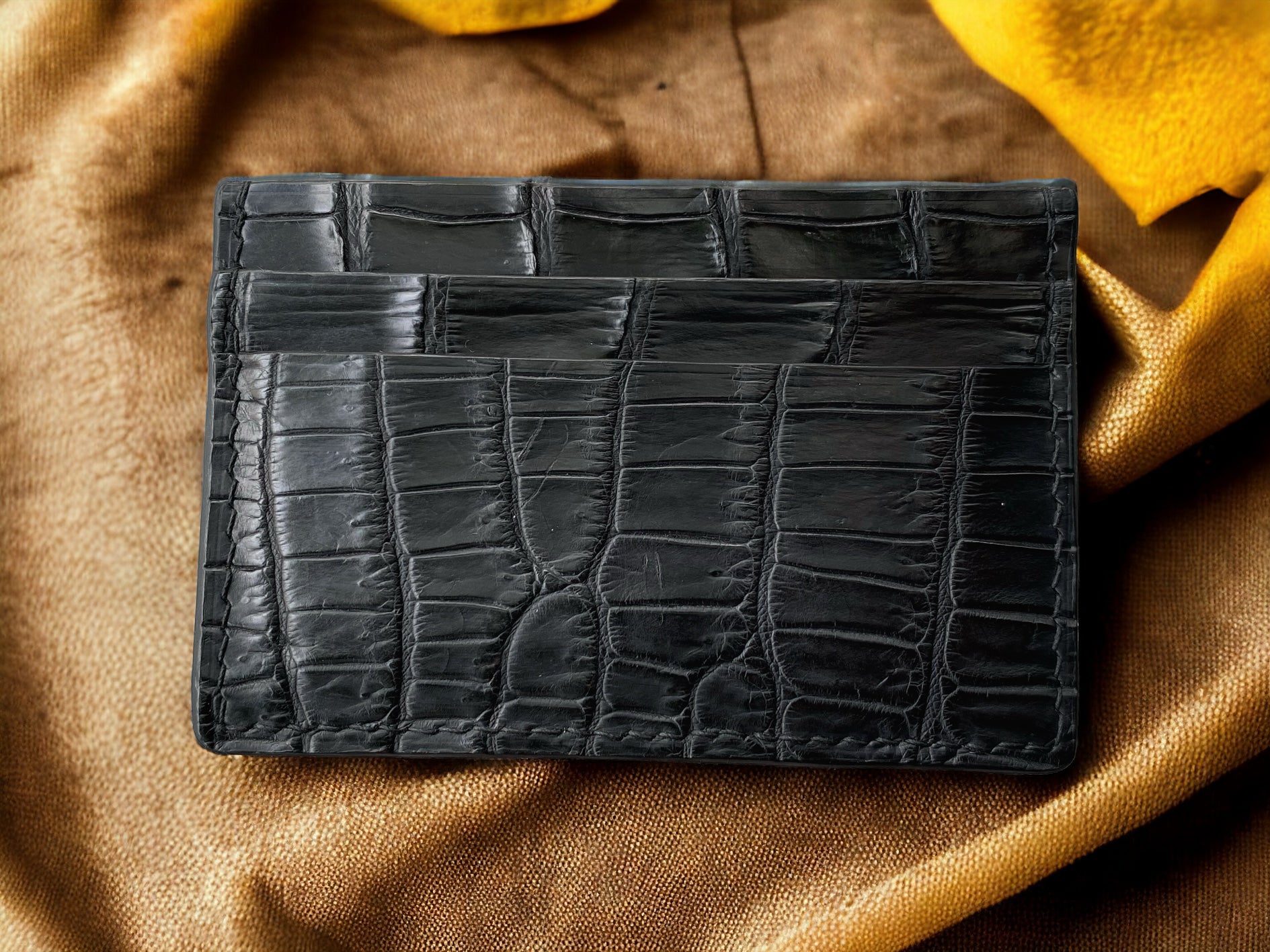 Custom card wallet is totally made by hand and easily made to your order. It is made from Alligator leather outside and cowhide leather for liner. This combination makes the wallet unique.
