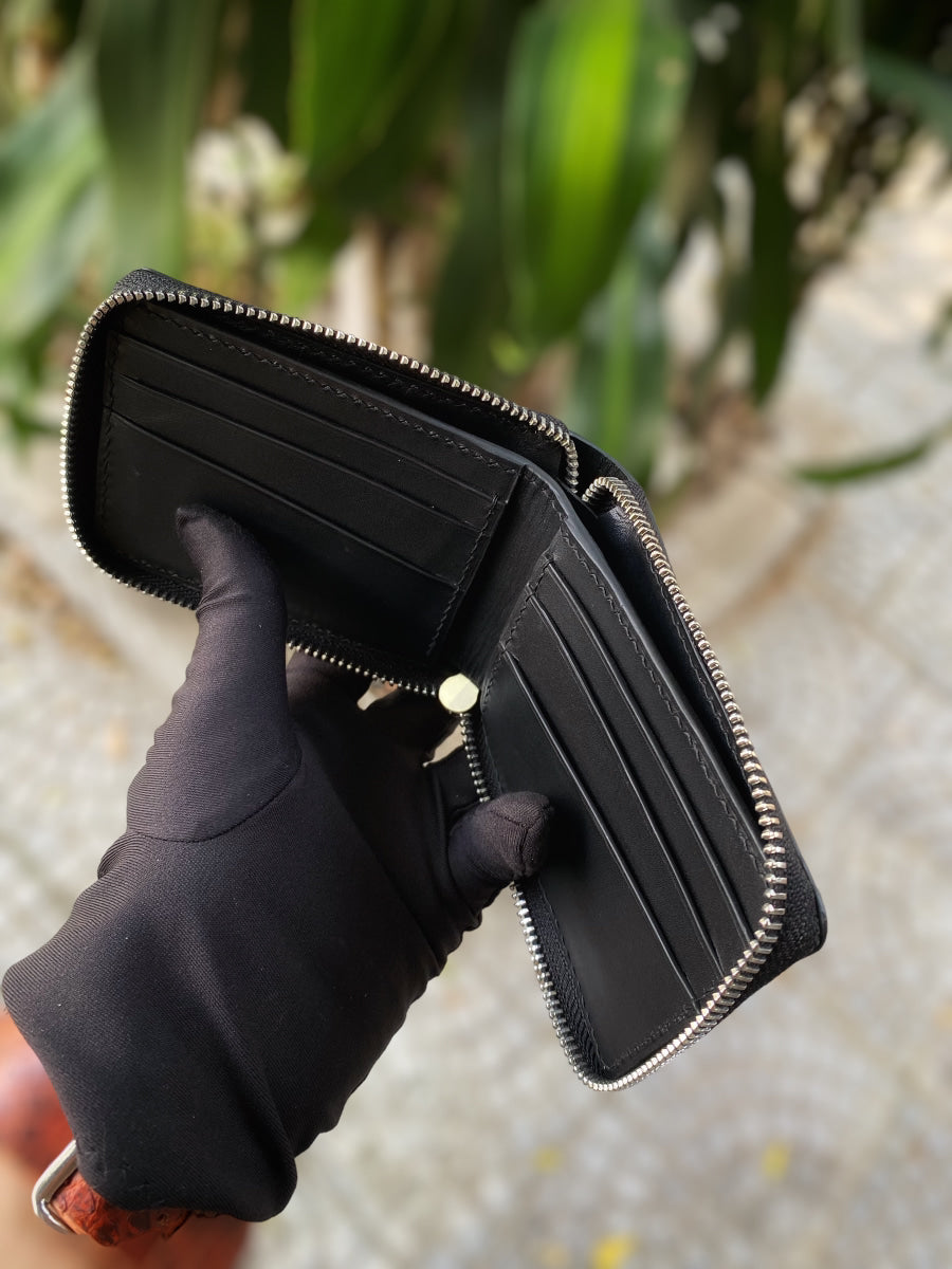 Handmade wallet is made of genuine Alligator Skin, featuring with cowhide leather. This combination makes the wallet look unique, soft to touch and flexible to put in your front pocket.