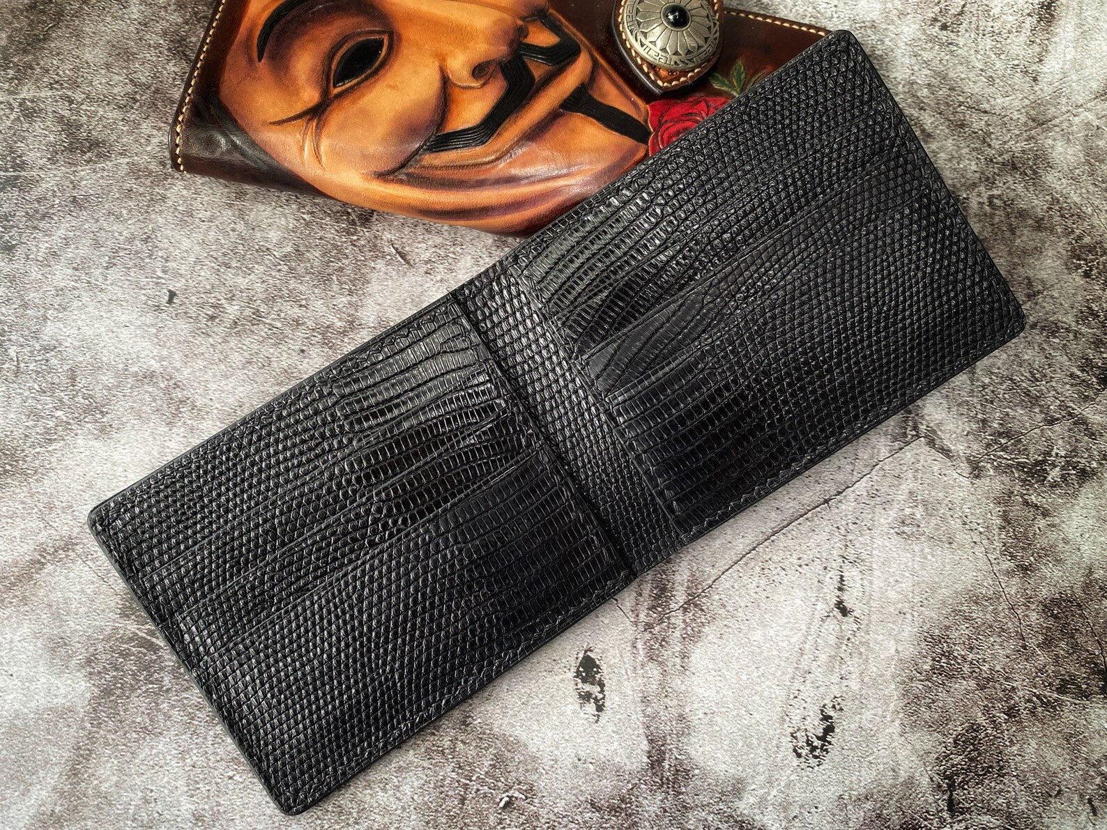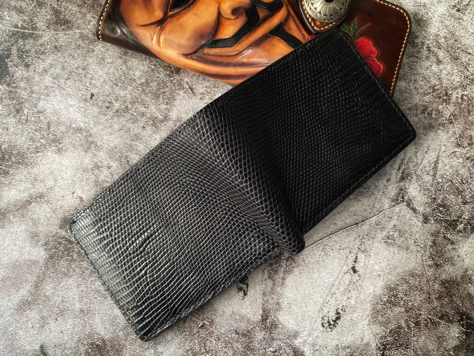 Black Lizard Leather Wallet