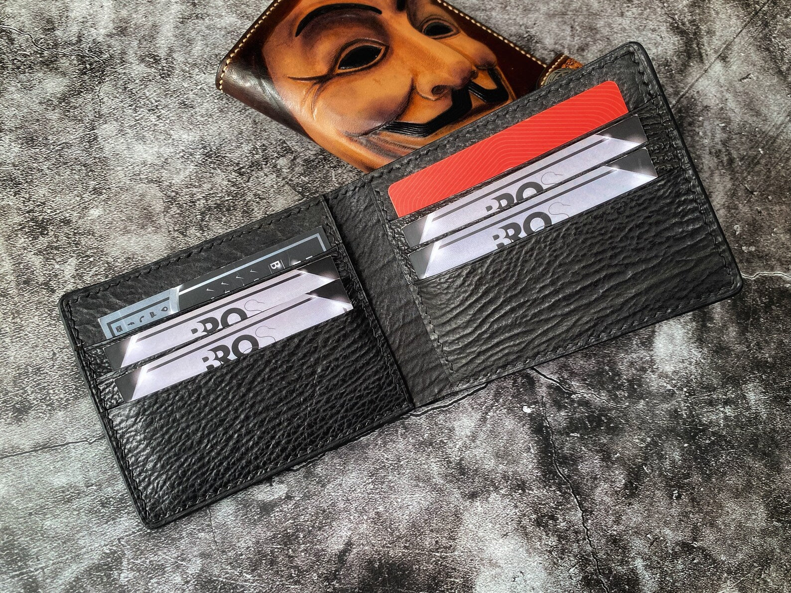 Handmade wallet is made of genuine Shark Skin, featuring with cowhide leather. This combination makes the wallet look unique, soft to touch and flexible to put in your front pocket.