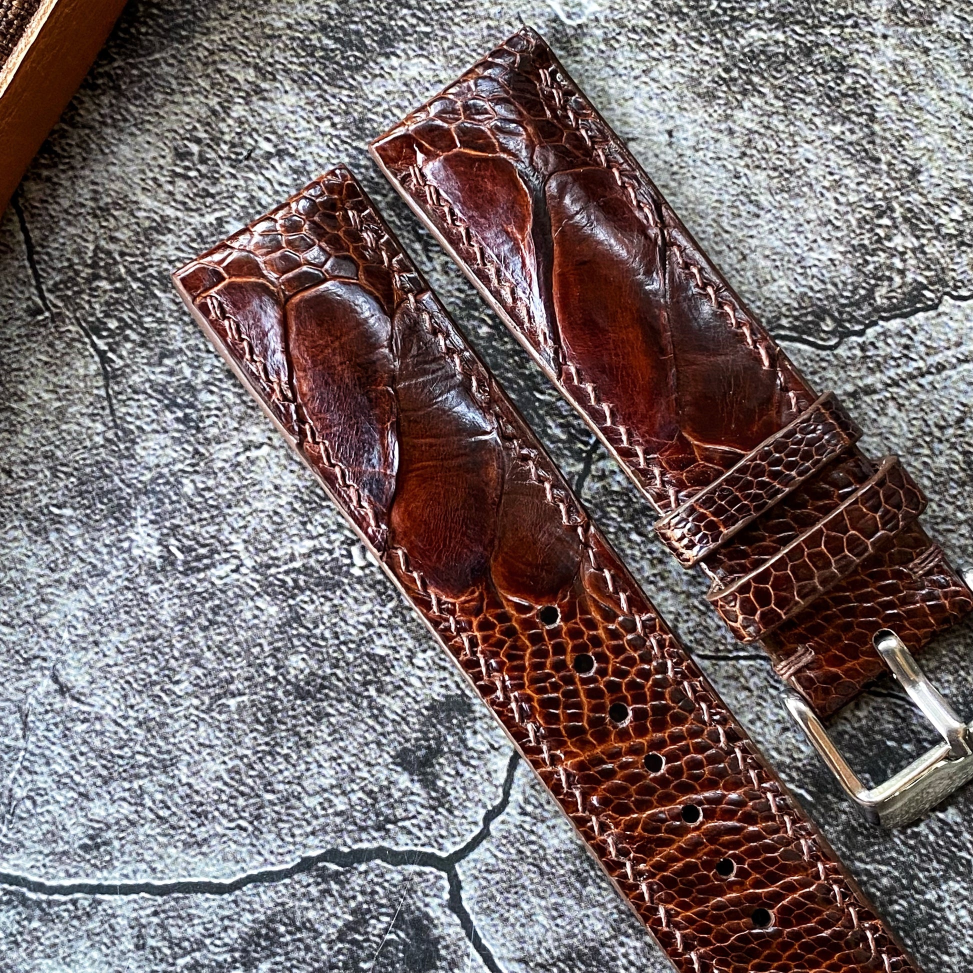 We provide many colours of Ostrich Leg leather watch straps with any band width. We can made for your own watch size.
