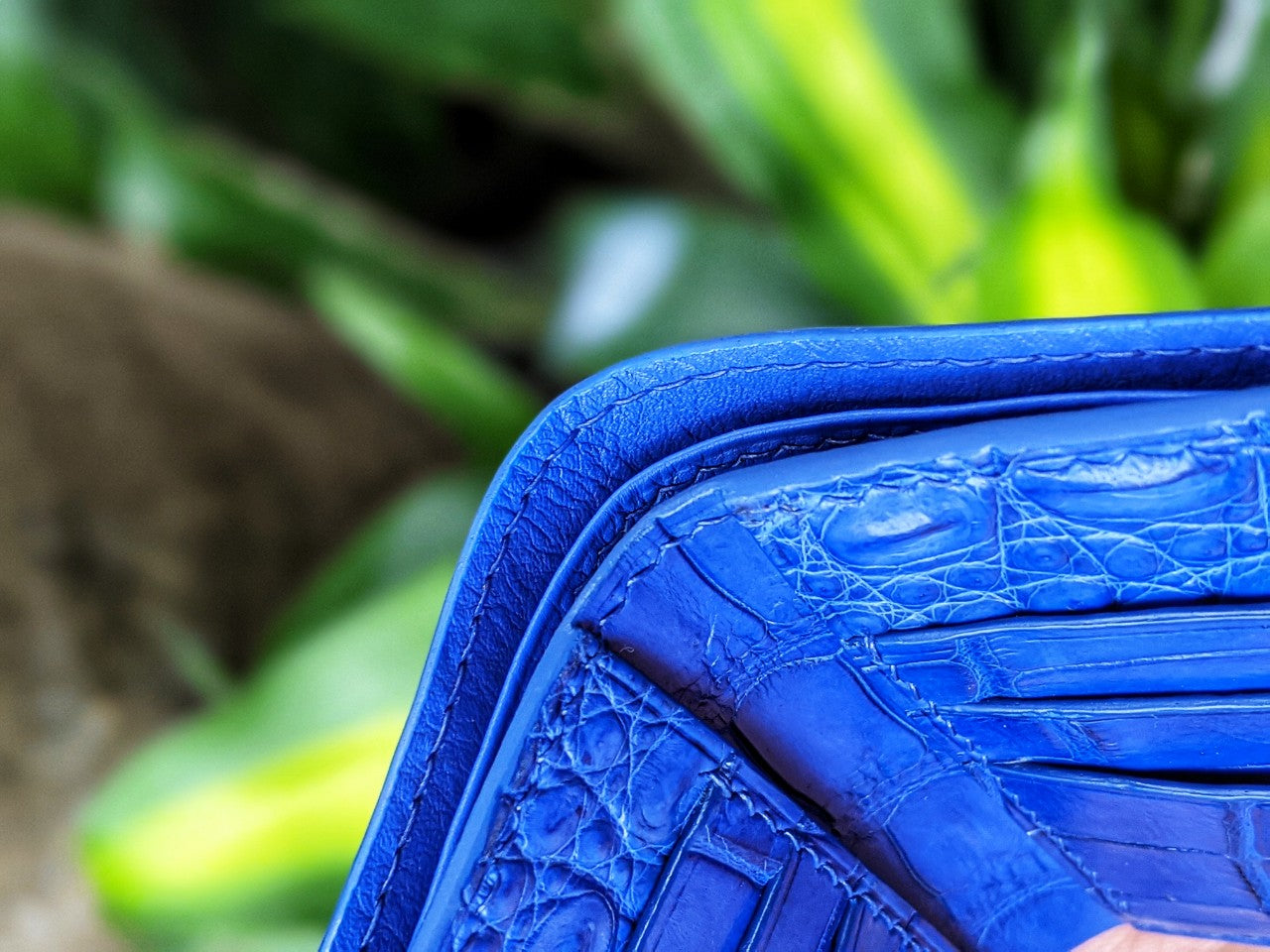 Handmade wallet is made of genuine Alligator Skin, featuring with cowhide leather. This combination makes the wallet look unique, soft to touch and flexible to put in your front pocket.