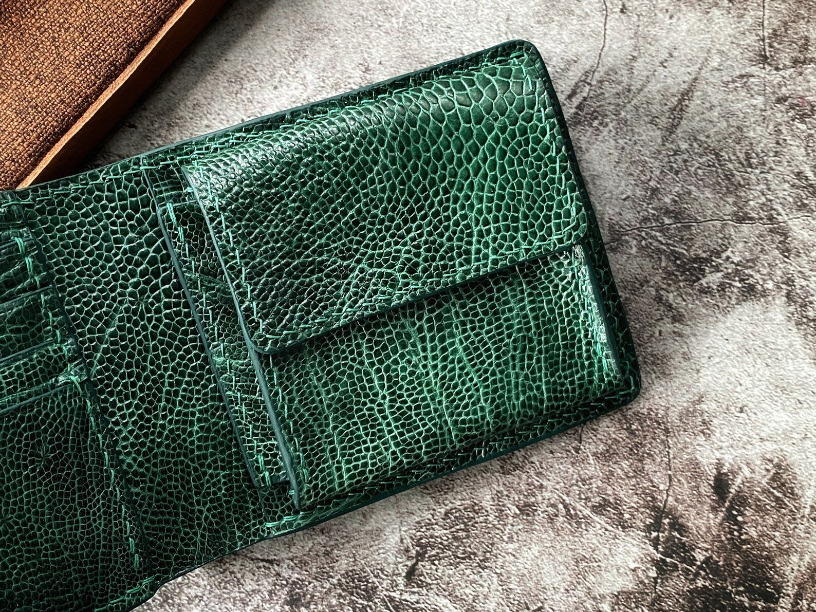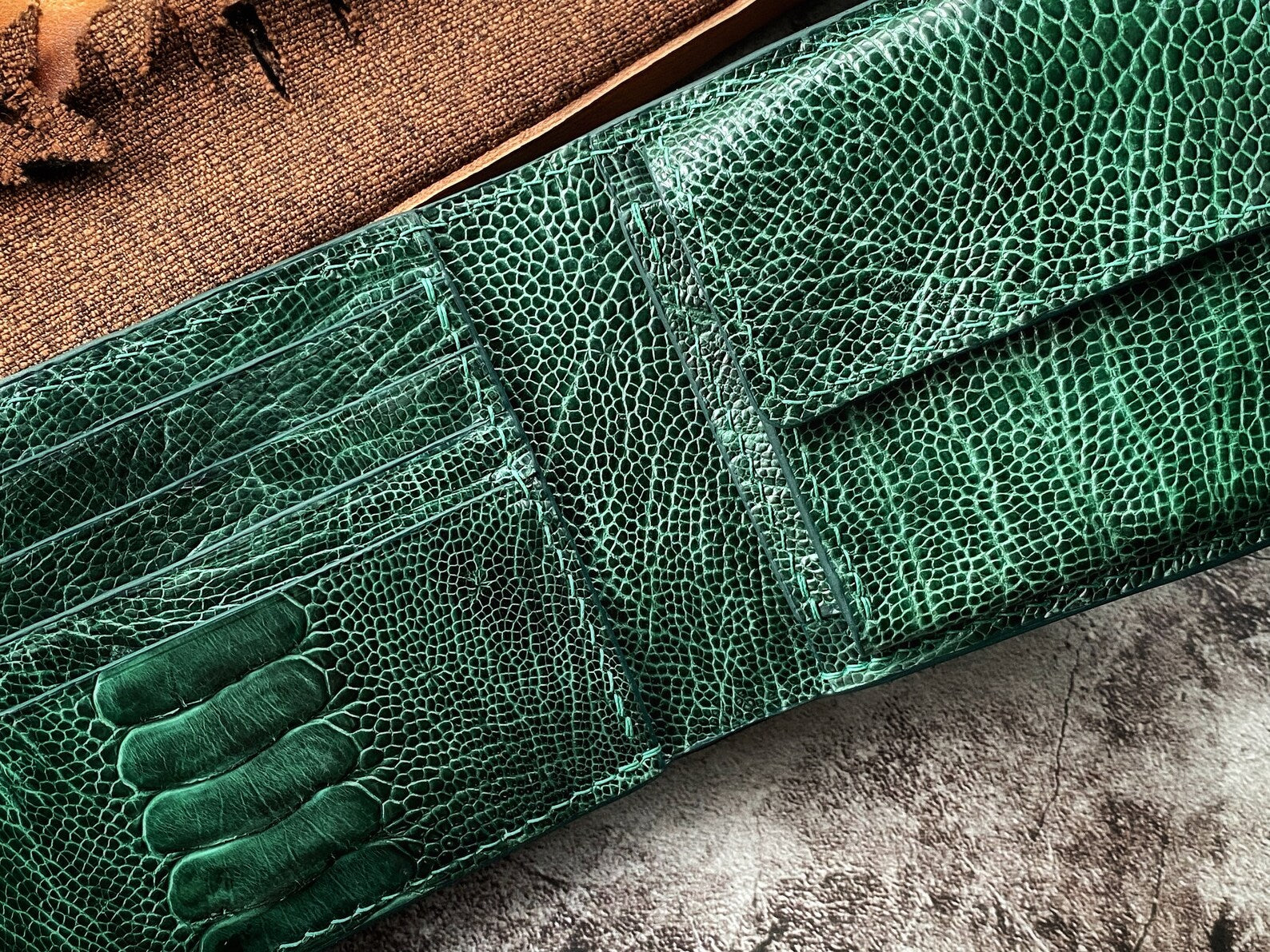Custom Green Ostrich Leg Wallet with Coin Pocket