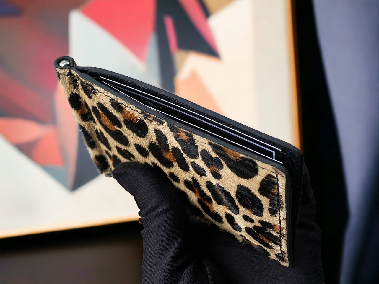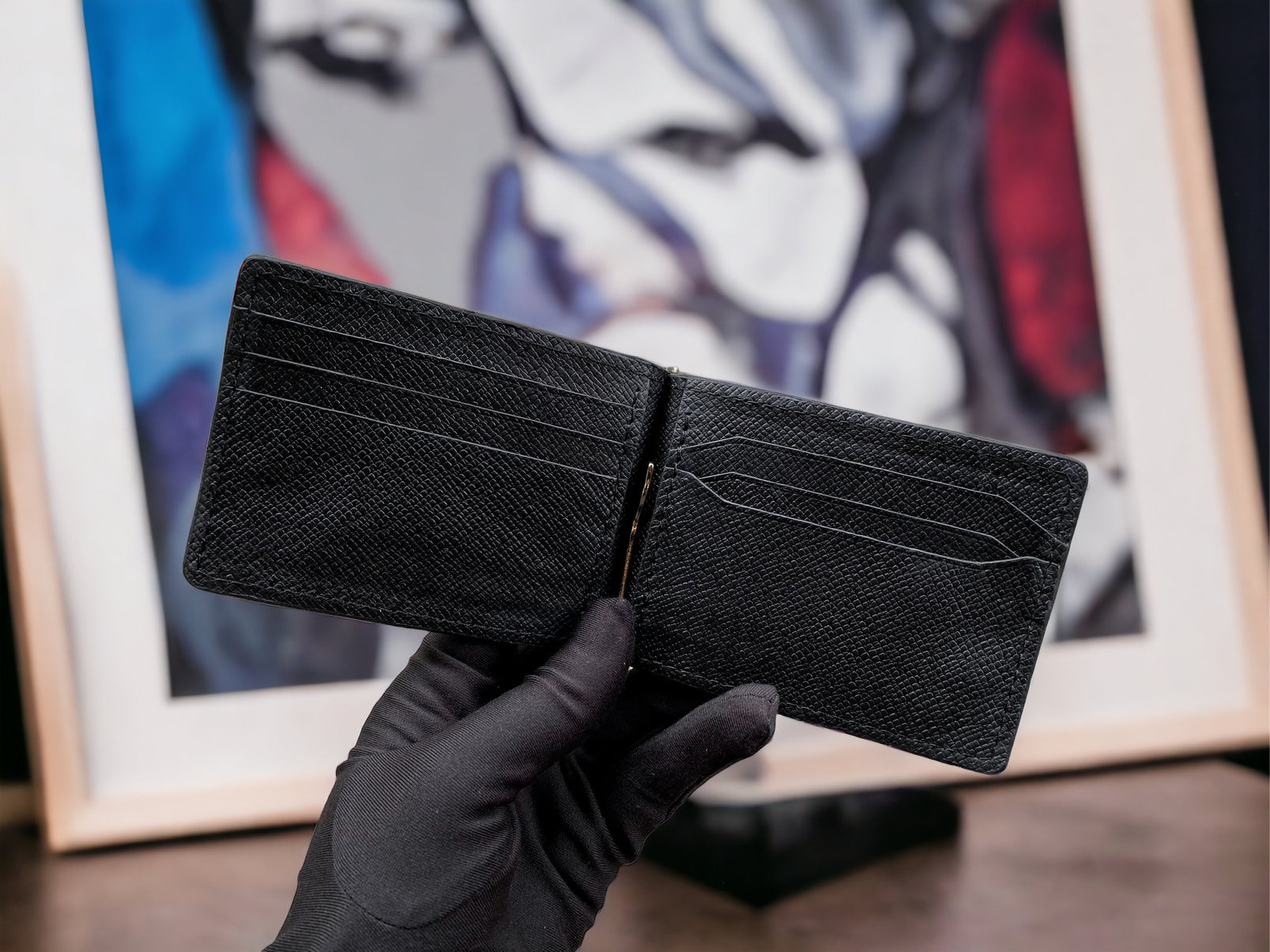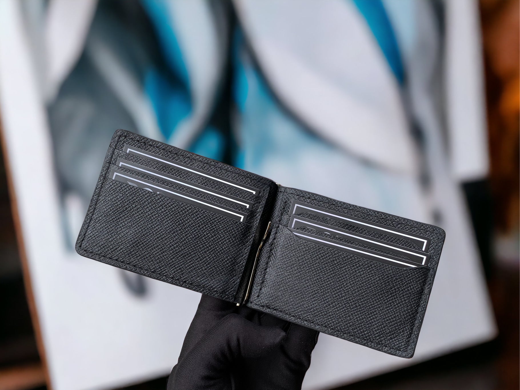 Handmade money clip wallet is made of genuine hair cowhide, featuring with epsom cowhide leather. This combination makes the wallet look unique, soft to touch and flexible to put in your front pocket.