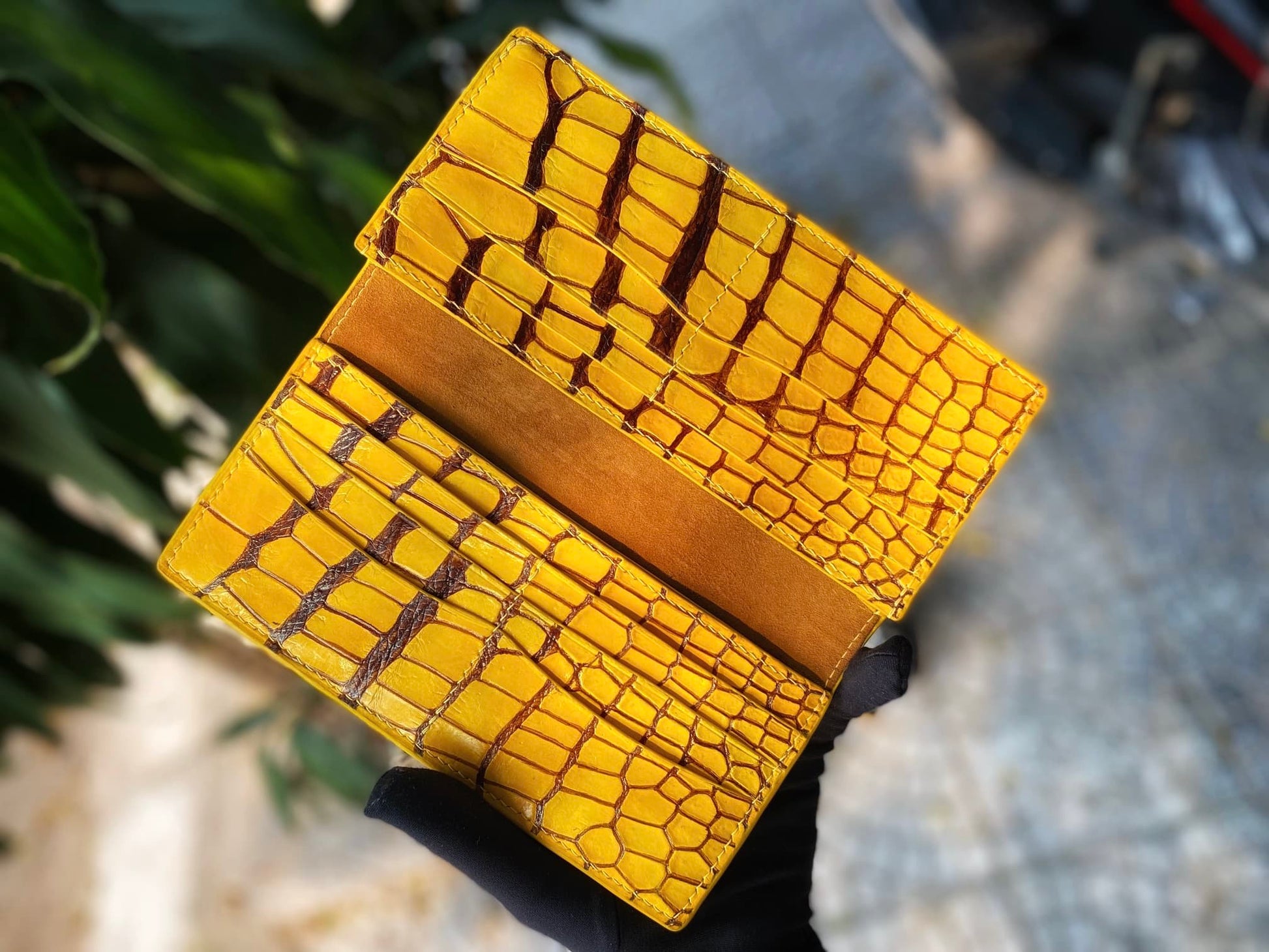 Custom Yellow Alligator Long Wallet